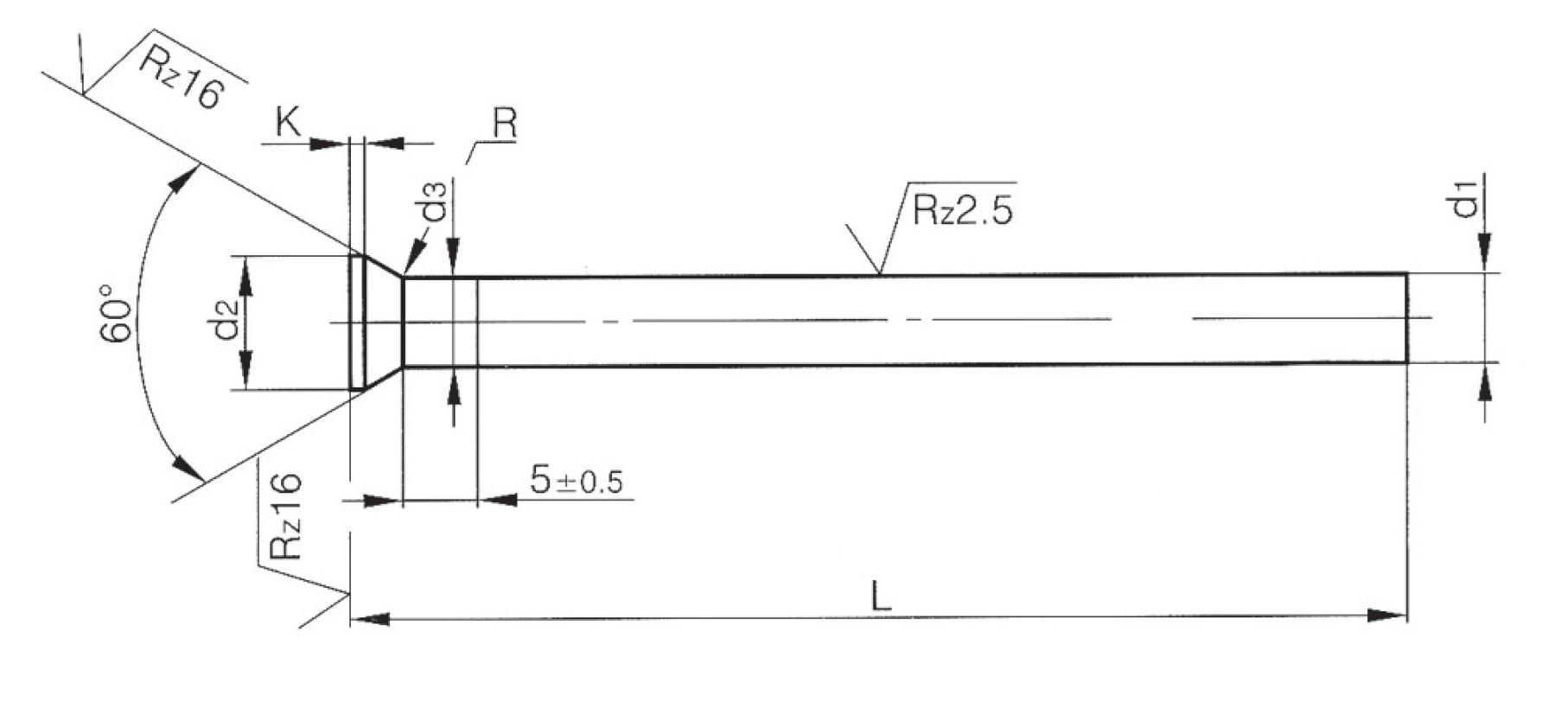 Hardness: 60 ± 2 HRC. Head 45 ± 5 HRC.