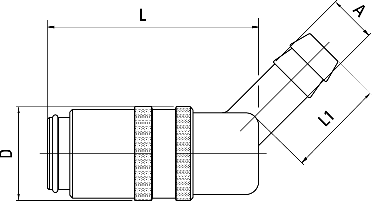 Coupling, 45° Hose Tail