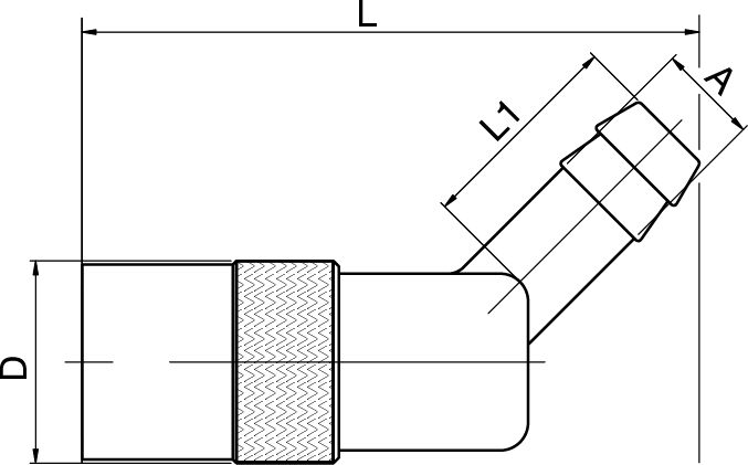 Coupling, 45° Hose Tail