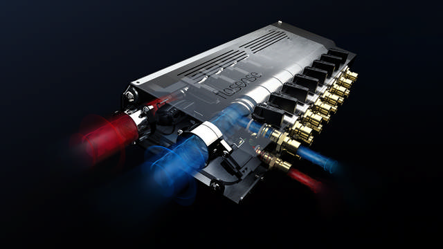 Crafted for durability, the Flosense manifolds feature a robust, one-piece forged design using nickel-plated DZR Brass. A metal celebrated for its resilience in harsh, corrosive environments like coolant systems.