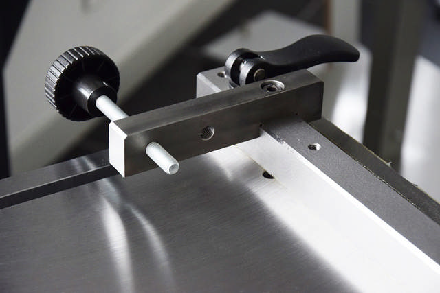 Immobilizes the mobile table in the rear position for added safety.