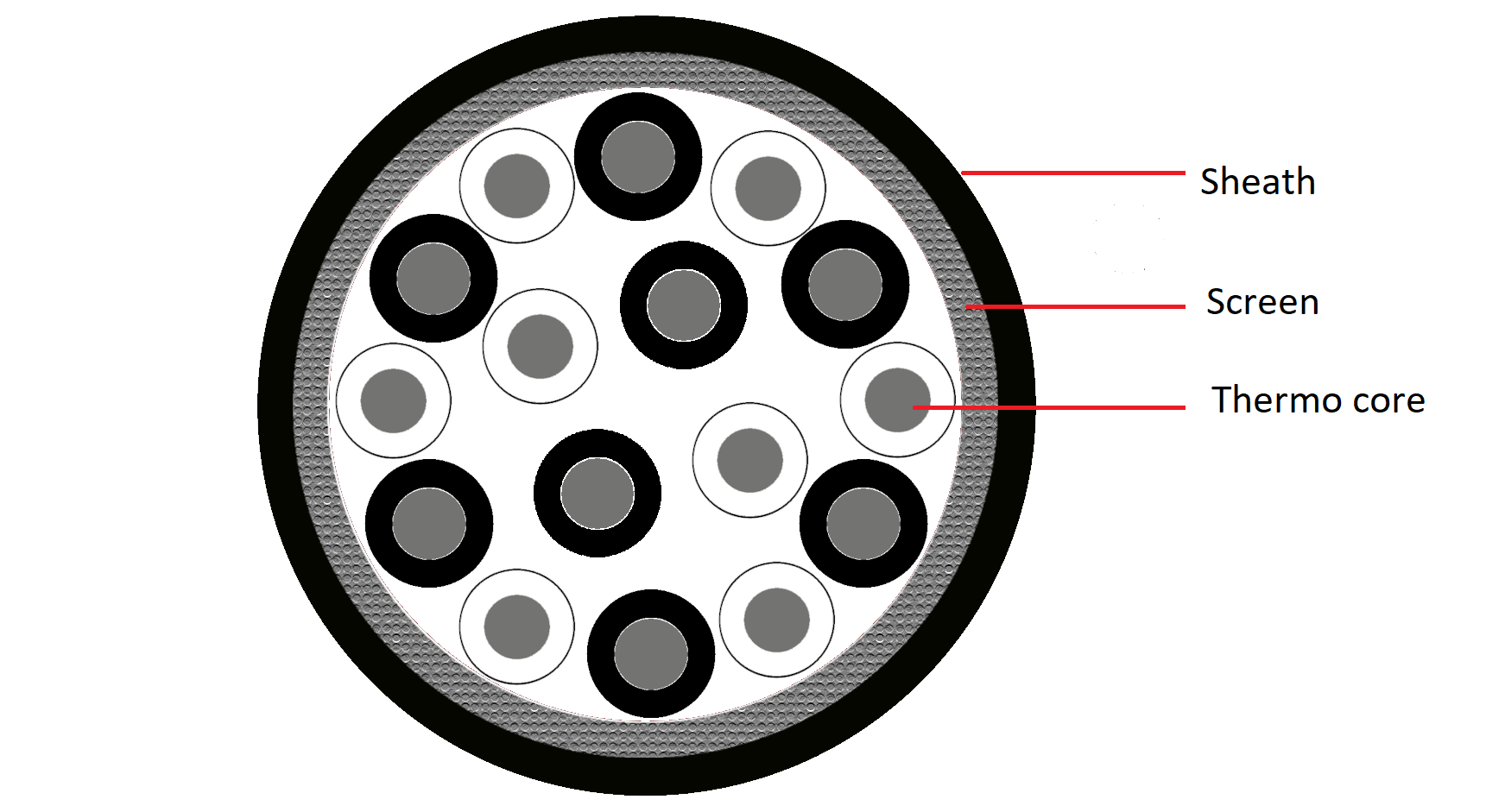 - DIN Standard Colours (Black/White), Numbered Cores Screen and Earth