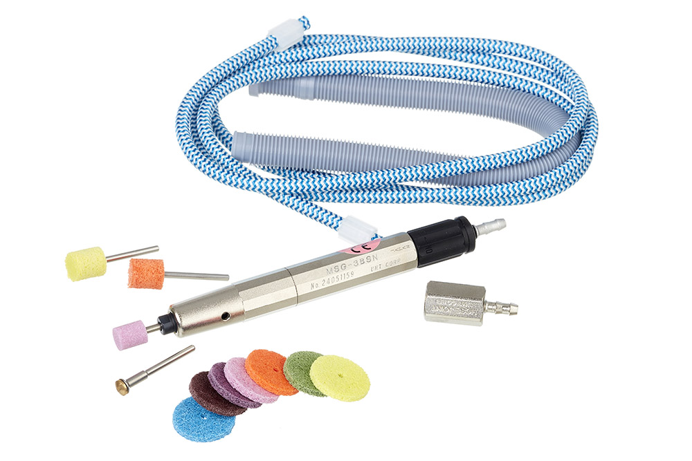 This Micro Grinder offers outstanding accuracy and durability with variable speed and a no-load speed of 65,000 rpm. Low air consumption at 0.4 Mpa